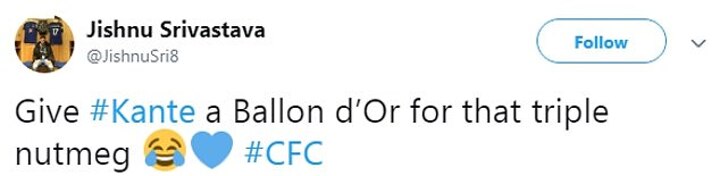 'Give Kante a Ballon d’Or for that triple nutmeg,' added another.