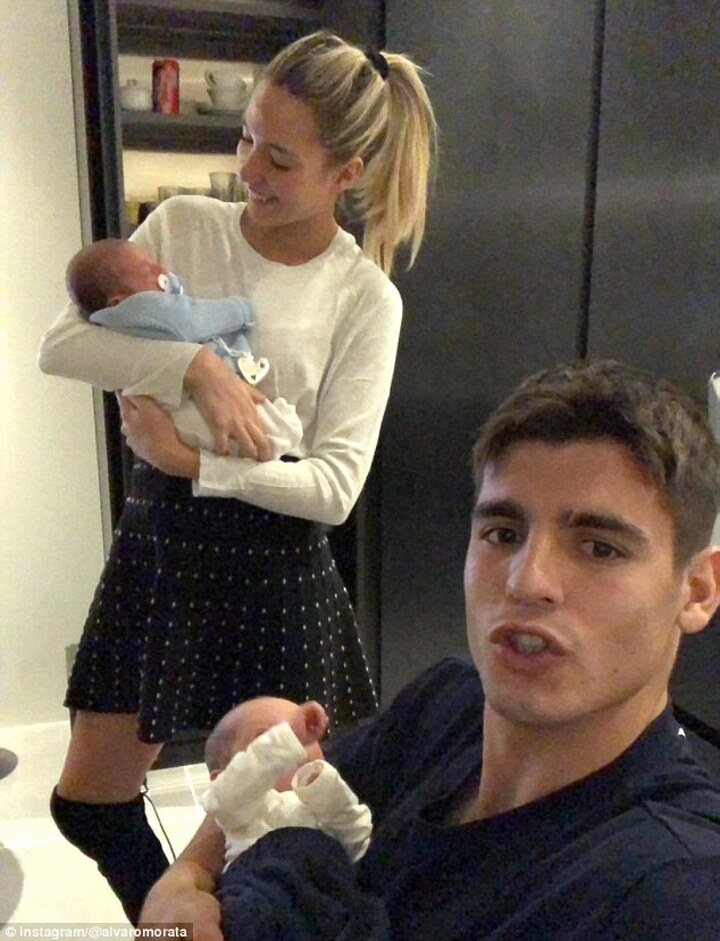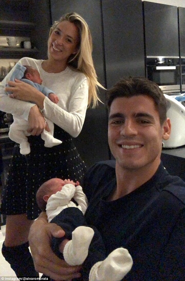 Morata looked comfortable as he showed his hand as a dad, pushing a twin-pram with both his children sitting side by side and also sharing pictures of them being fed.