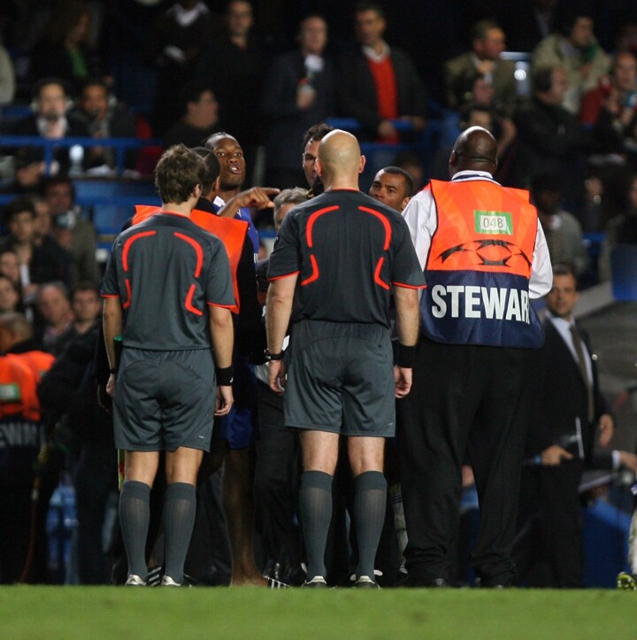 Didier Drogba infamously confronted the officials after the match, branding their performance a 'f****** disgrace', while Chelsea manager on the night Hiddink described it as 'the worst refereeing' he ever saw.