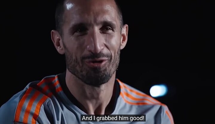Giorgio Chiellini has taken a look back at his infamous shirt pull on Bukayo Saka in the Euro 2020 final and laughed: 'I grabbed him good!'