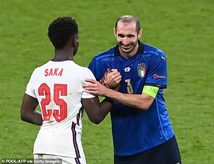 Before that, however, Chiellini left England fans furious when he pulled Saka down as the Arsenal star tried to race into the final third.