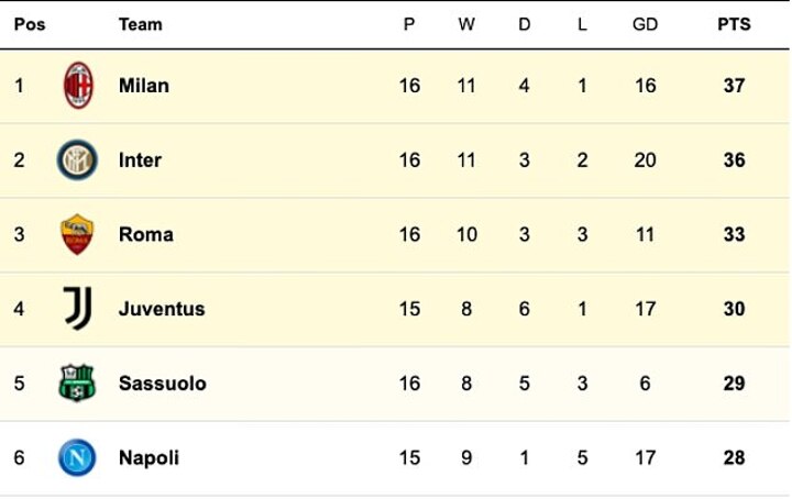 Ominously, the champions of the past nine seasons now lurk just seven points behind leaders Milan - and Juventus retain a game in hand.
