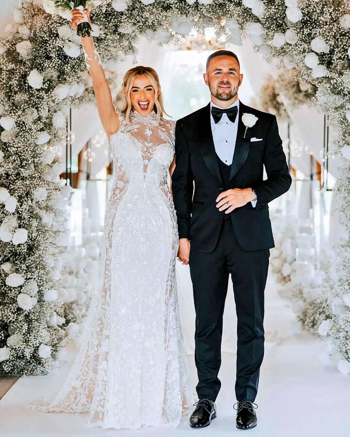 Kelly stunned in bold wedding gown at the wedding that saw a whole host of familiar faces attend, including fellow football stars Steph Houghton and Ruby Mace as bridesmaids.