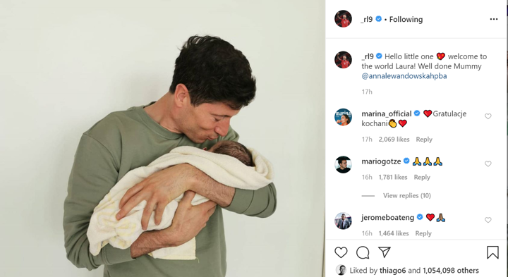Congratulations to Robert Lewandowski and wife Anna on the birth of their baby daughter, Laura!