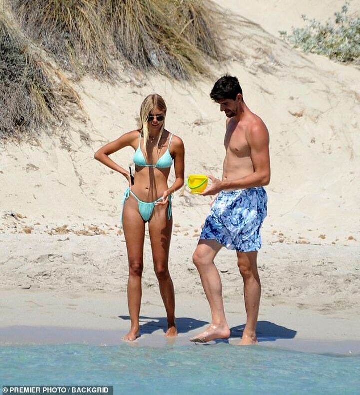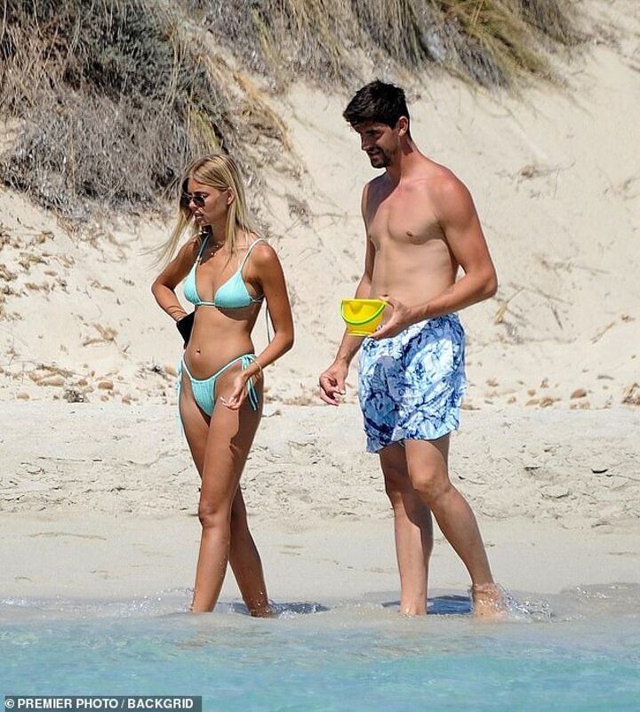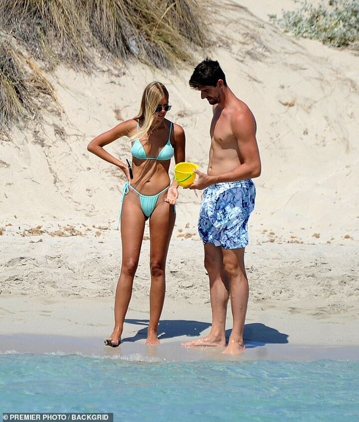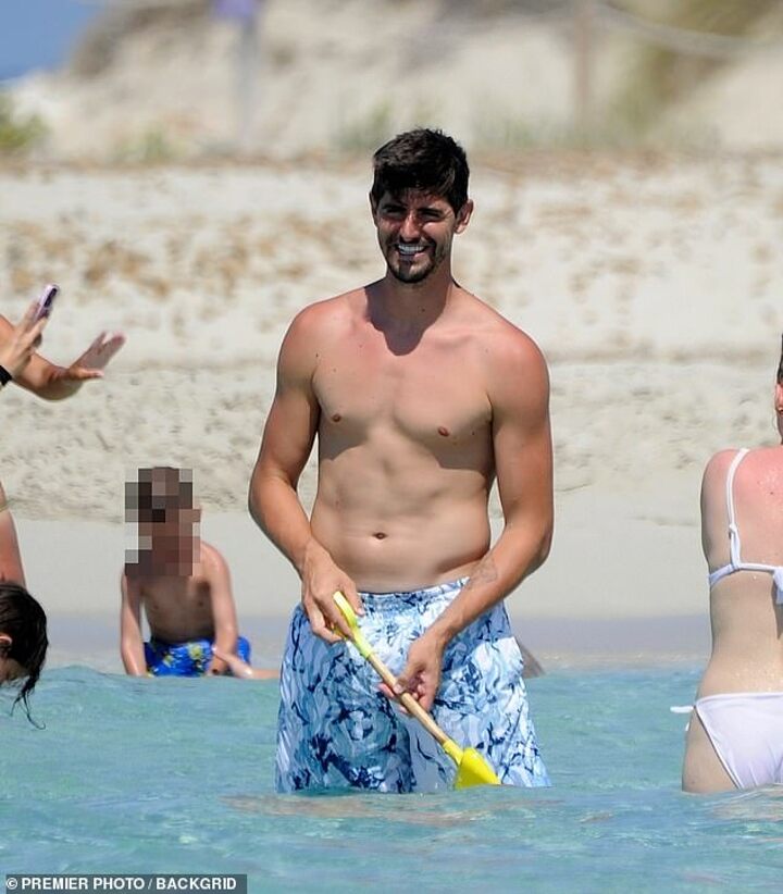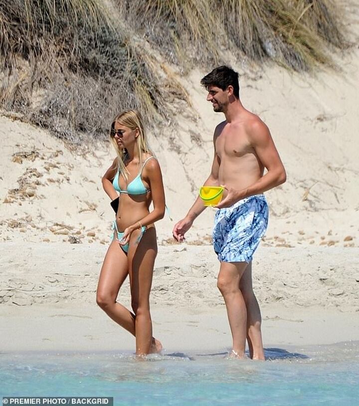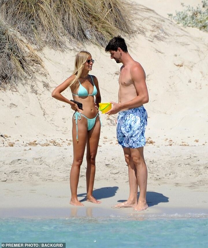 Newlyweds Thibaut Courtois and Mishel Gerzig enjoyed a day at the beach on Wednesday as they honeymooned in Formentera.