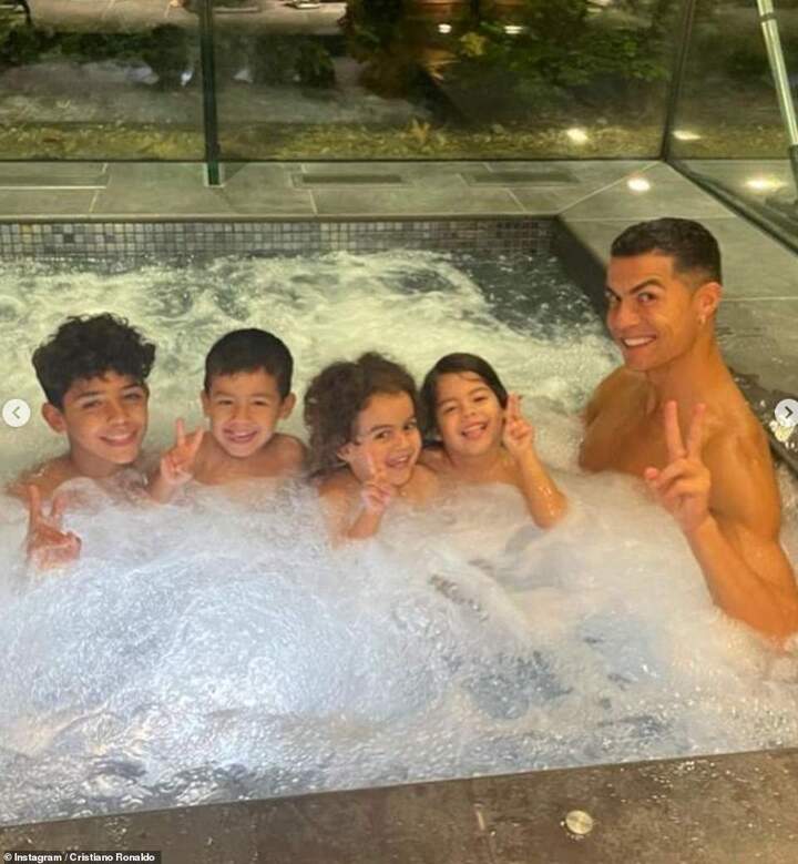 Ronaldo's post showed himself and Georgina proudly displaying their twins' ultrasounds, along with an image of his four children swimming together.