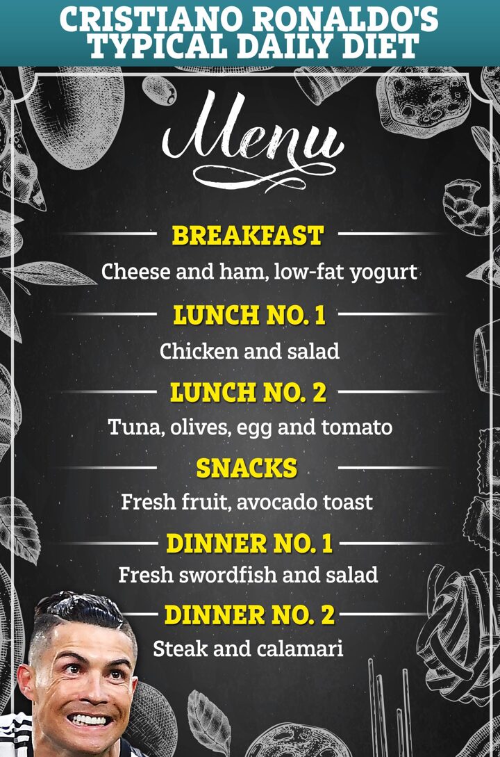 For breakfast Ronaldo will eat ham and cheese and low-fat yoghurt.