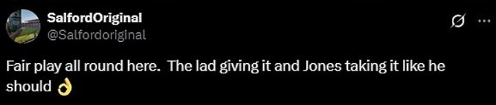 'Fair play all round here. The lad giving it and Jones taking it like he should,' one said.