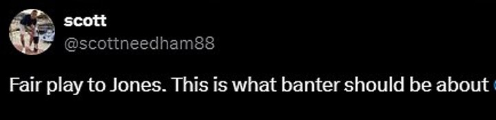 'Fair play to Jones. This is what banter should be about,' another wrote.