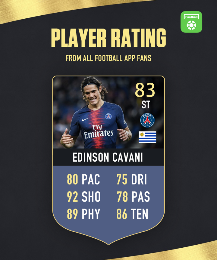 Hello everyone, welcome to - Daily Player Rating! You could be the judge and rate one player every day at 10:00 CET. The results will be declared in the form of Fut Card tomorrow. We released the rating of Edinson Cavani yesterday. He got 84 total points with highest 92 in shooting. The detailed results are as follows: