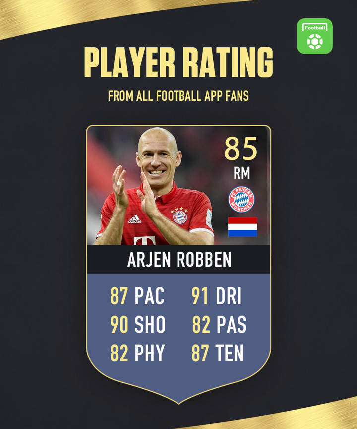 Hello everyone, welcome to - Daily Player Rating! You could be the judge and rate one player every day at 10:00 CET. The results will be declared in the form of Fut Card tomorrow. We released the rating of Arjen Robben yesterday. He got 85 total points with 91 in dribbling and 90 in shooting. The detailed results are as follows:
