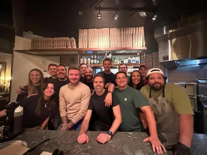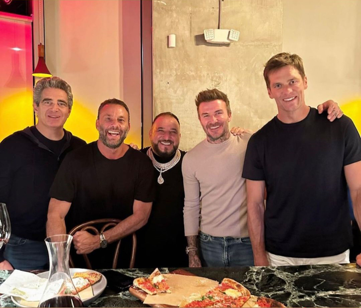 While the restaurant owner, Dave Grutman, hailed Beckham and Brady's presence as a "GOAT pizza party".