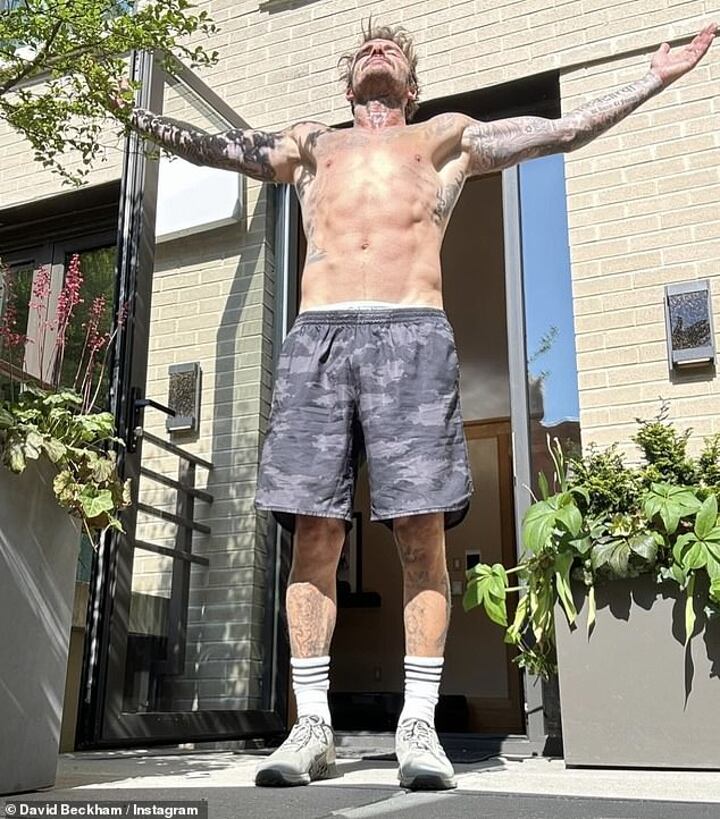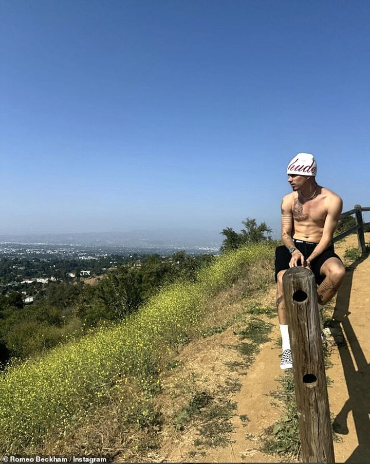 David's son Romeo showed himself to be a chip off the old block as he also shared a shirtless snap to his Instagram.
