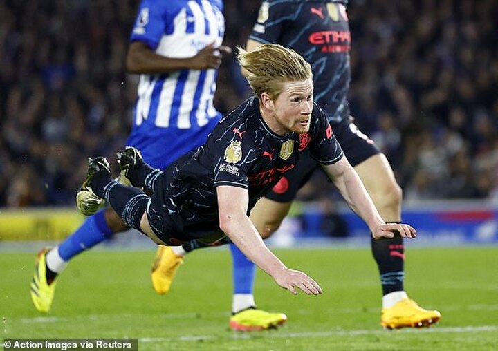 The Belgian superstar scored a diving header after 17 minutes to give Pep Guardiola's side the lead at the Amex Stadium.