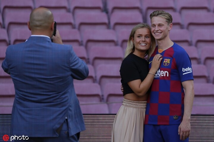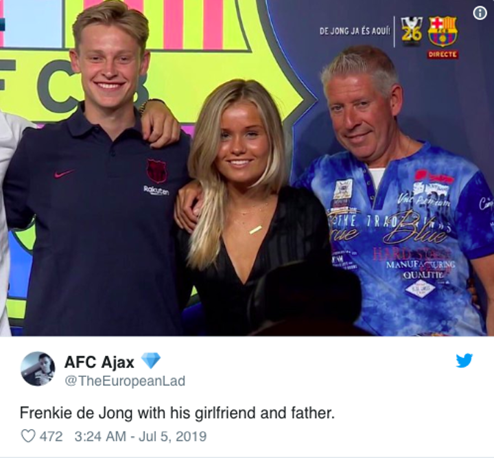 Frenkie de Jong was presented as a Barcelona player on Friday afternoon as long term girlfriend Mikky Kiemeney stood by his side.