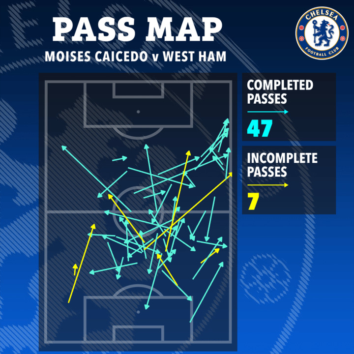 Caicedo is impressing in playmaking too, completing 252 passes to Rice’s 84.