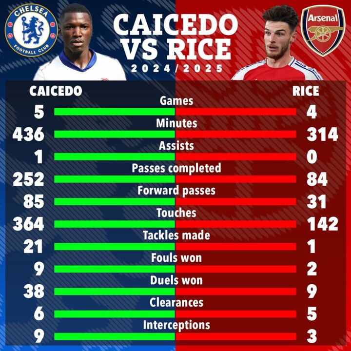 Yet the stats show that Caicedo is having a much better individual season so far than his Arsenal couterpart.