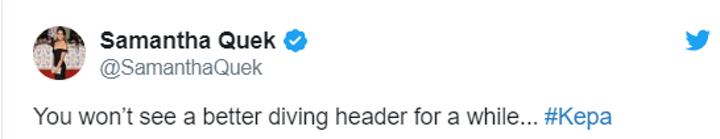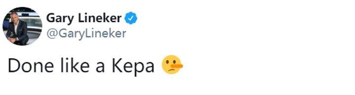 TV presenter Gary Lineker led the jokes, claiming the Spaniard was 'Done like a Kepa', while Olympic hockey star Sam Quek claimed 'You won’t see a better diving header for a while.'