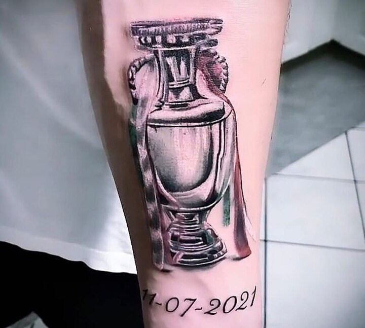 Gianluigi Donnarumma, England's heartbreaker in the Euro 2020 final, has inscribed his arm with a tattoo of the trophy.