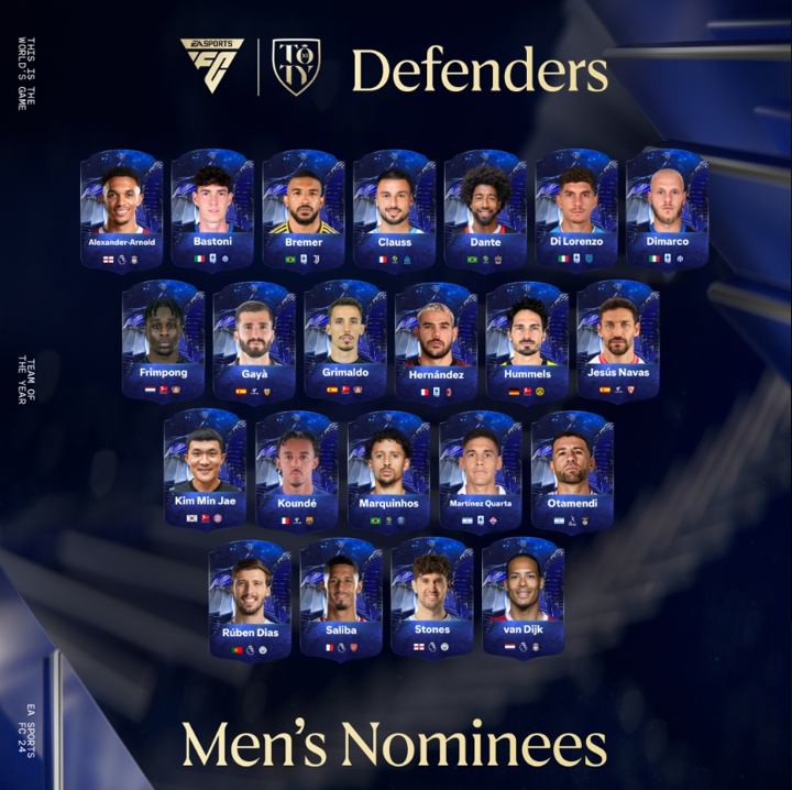EA Sports FC pick the star performers from the past 12 months. Here are the nominees for the Men’s Team of the Year.