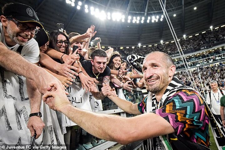 Giorgio Chiellini was given a standing ovation by Juventus fans as he was substituted on the 17th minute - representing the number of seasons he spent at the Bianconeri.