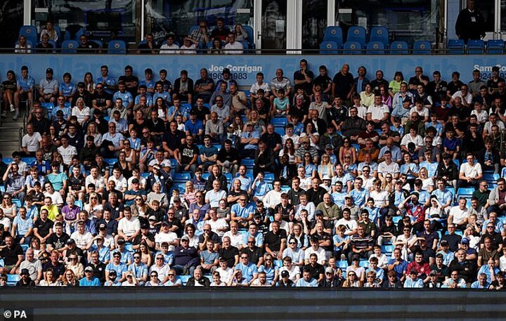 Empty seats were visible at the Etihad Stadium on Saturday despite Pep Guardiola's plea for more Manchester City supporters to attend.