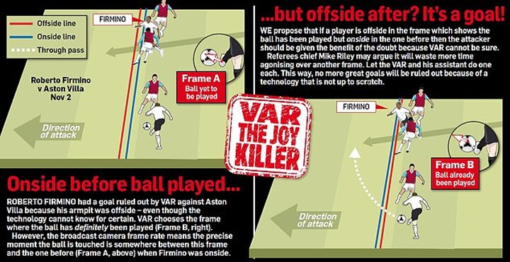 In August, The Mail on Sunday revealed that broadcast cameras used by VAR were not good enough to know for certain when it was ruling players to be as little as 2cm offside.