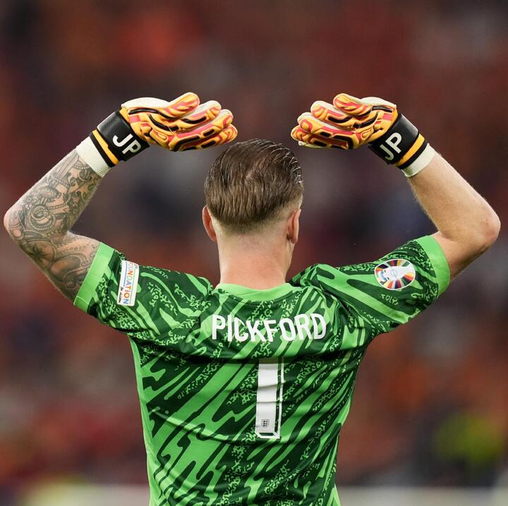 The Three Lions' number one Jordan Pickford has a full sleeve on his left arm, going from his shoulder to his wrist.