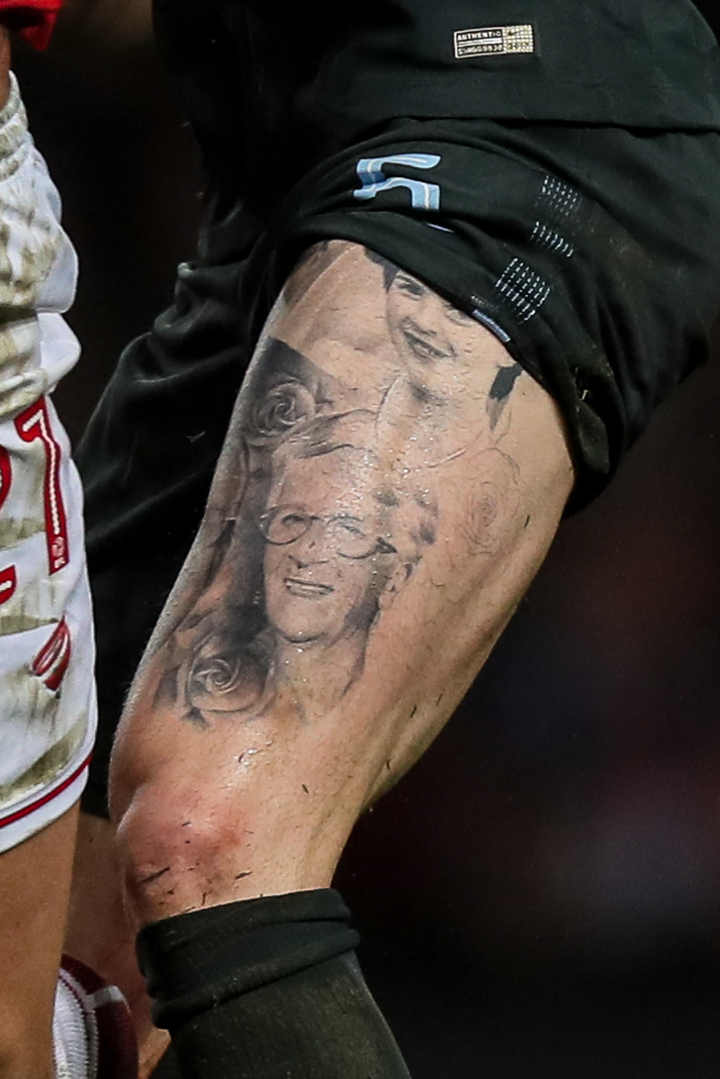 John Stones has a host of tattoos, including touching tributes to his grandparents on his legs.