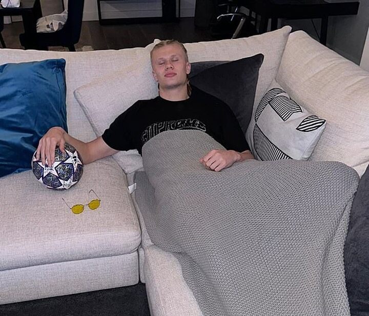 Haaland, 22, captioned the picture: 'That's bloody lovely!'