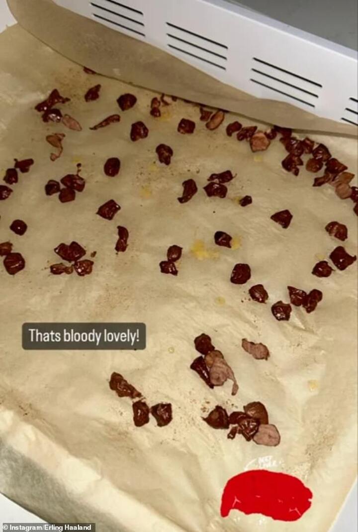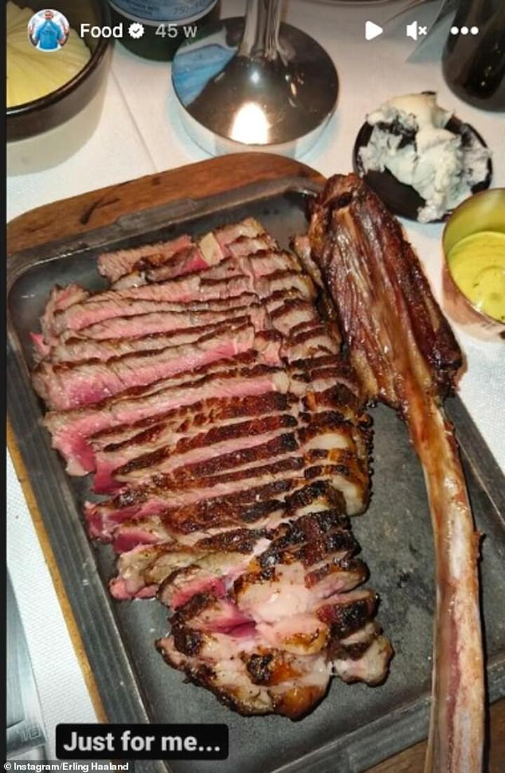 Usually, Haaland posts social media pictures of juicy steaks, oysters, lobster and other appetising dishes - but this time his dinner wasn't quite as appealing.
