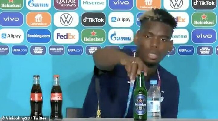 Paul Pogba is the latest footballer to be in mood to pander to sponsors after the Frenchman removed a bottle of Heineken placed in front of him at a Euro 2020 press conference.