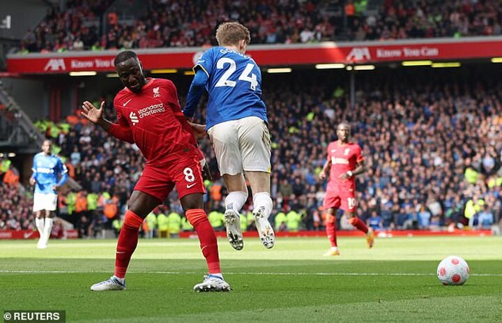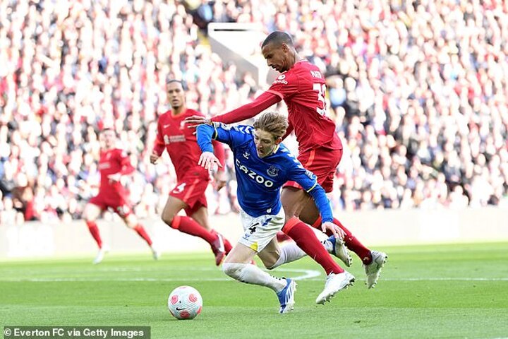 With the score level at 0-0, Everton believed that the Liverpool defender bundled over their player inside the area.