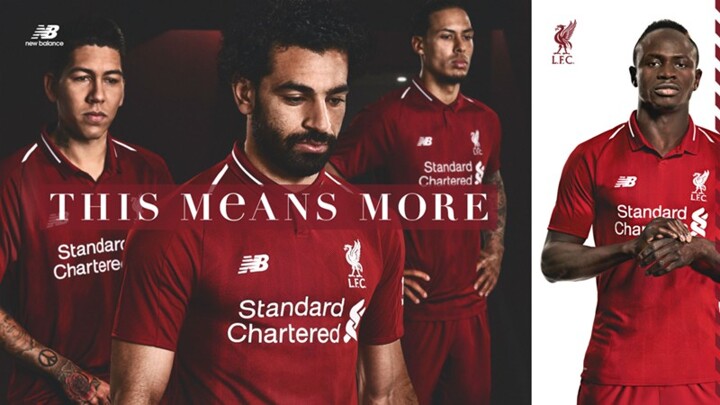 Liverpool - Home Liverpool's New Balance home kit for the 2018-19 campaign retains the popular pepper red colouring and pays tribute to the victims of the Hillsborough disaster by including the eternal flame on the neck of the shirt.