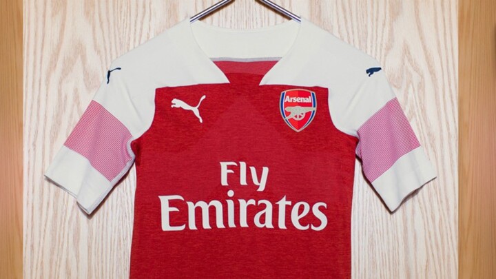 Arsenal - Home Arsenal's first home shirt since the departure of Arsene Wenger features red stripes on the white sleeves, as well as a diamond pattern on the front of the strip. White shorts and socks complete the kit.