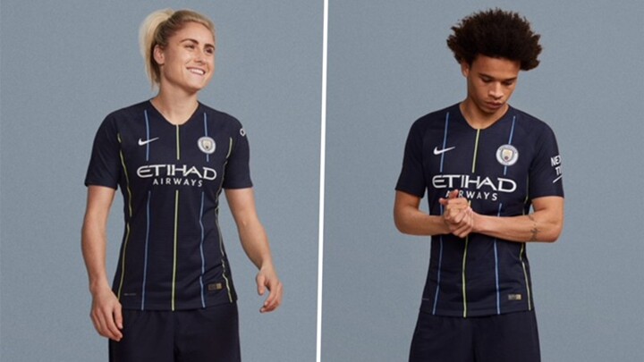 Manchester City - Away Manchester City have launched a commemorative away kit for the 2018-19 season. Drawing inspiration from a key moment in the club’s history, the away kit features a dark blue shirt with field blue and luminous yellow pin stripes down the front and back, alongside dark blue shorts. Design creative comes from the 1998-99 away shirt which was worn when city memorably beat Gillingham in the Second Division play-off final at Wembley to make an immediate return to Division One.