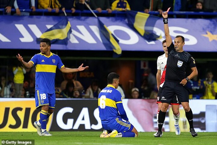 He was handed a one-match suspension for the red card that resulted and was then banned from captaining Boca for a month.