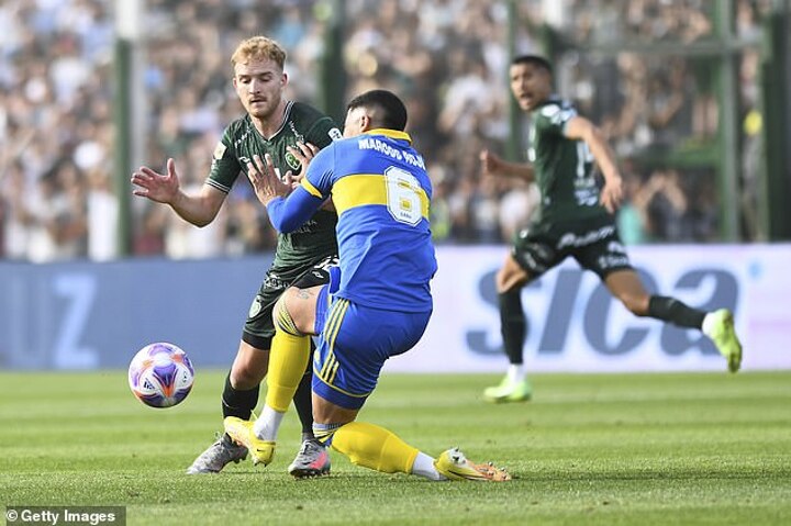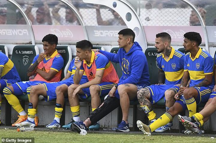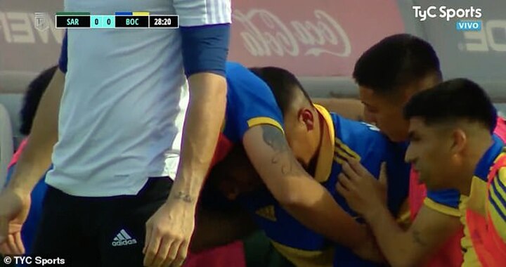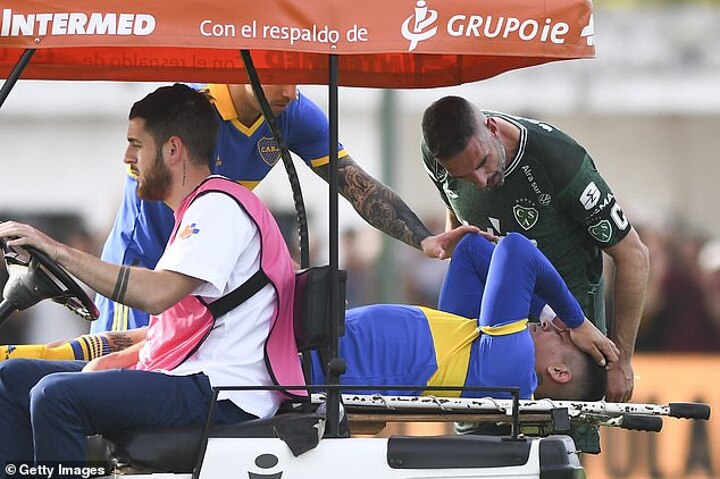 Boca's No 6 crumpled to the ground as Sarmiento forward Luciano Gondou stepped over him and immediately signalled to the bench while holding his knee.