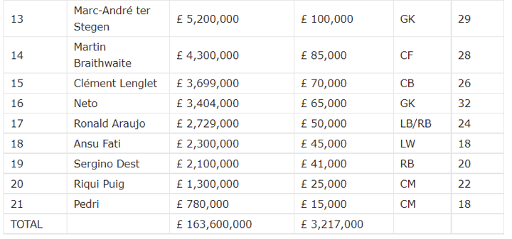 Let’s have a look on FC Barcelona Players Wages 2021 details and Market Worth details below.