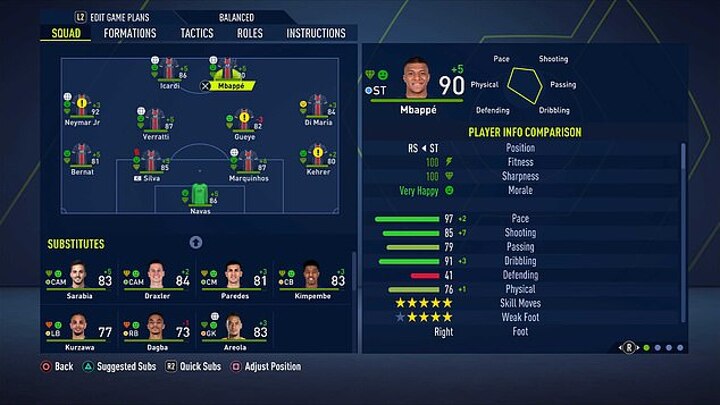 Saintly patience must be retained when the game's poster boy Kylian Mbappe - now rated 90 overall - blitzes towards your defensive line with dazzling feet. It is certainly a baptism of fire, dive in and you're done for.