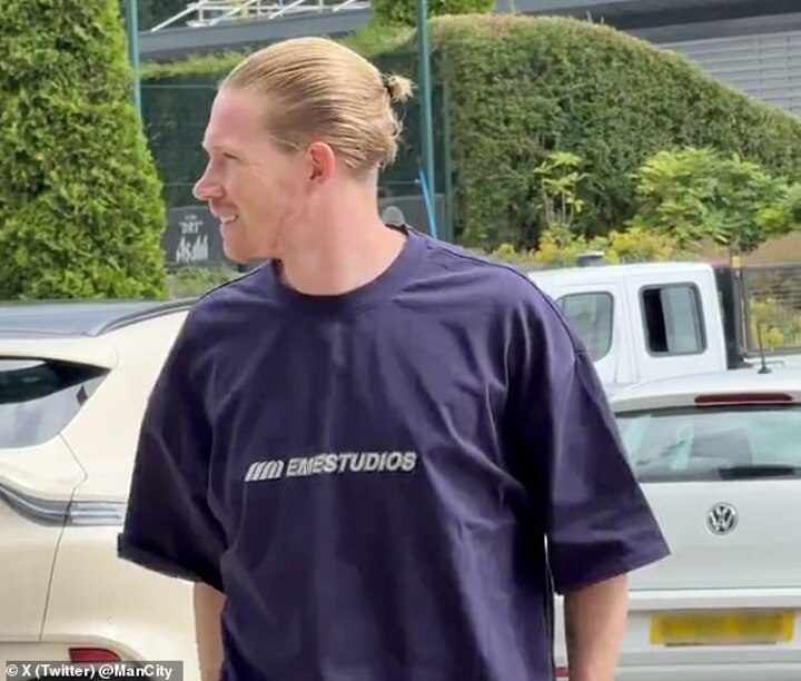 The Belgian playmaker - who had been granted extra time off after his involvement at Euro 2024 this summer - arrived at City's Etihad Campus sporting a new hairstyle.
