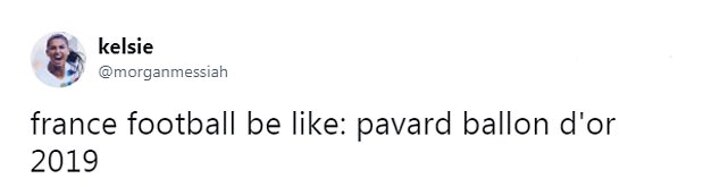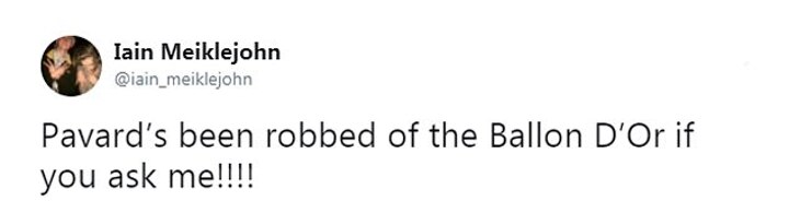 One twitter user wrote: 'Pavard's been robbed of the Ballon D'Or if you ask me!!!'.