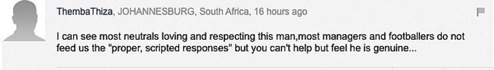 Another added: 'I can see most neutrals loving and respecting this man, most managers and footballers do feed us the "proper, scripted responses", but you can't help but feel he is genuine...'