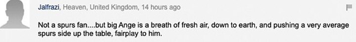 One Mail Sport reader said: 'Not a Spurs fan... but big Ange is a breath of fresh air, down to earth, and pushing a very average Spurs side up the table, fair play to him.'