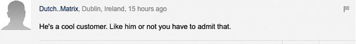 'He's a cool customer. Like him or not you have to admit that,' proclaimed a further reader.