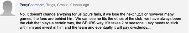 'We can see he fits the ethos of the club, we have always been the club that plays a certain way, the SPURS way. If it takes 2 or (3) seasons, Levy needs to stick with him and invest in him and the team and eventually it will pay dividends...'