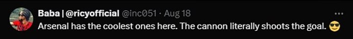 'Arsenal has the coolest one here. The cannon literally shoots the goal,' one wrote.