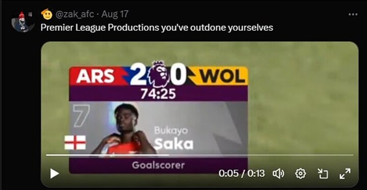 'Premier League Productions, you've outdone yourselves,' another added, noting that the broadcaster had also added specific graphics for goalscorers.