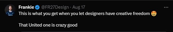 'This is what you get when you let designers have creative freedom. That United one is crazy good,' another added.