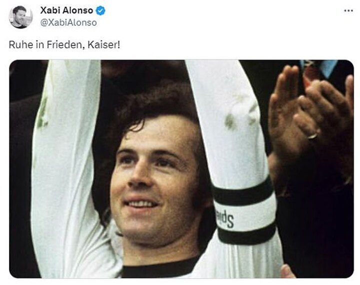 Xabi Alonso, World Cup winner with Spain and current boss at Bayer Leverkusen, simply wrote: 'Ruhe in Frieden (Rest in Peace), Kaiser!', with a picture of his success from 1974.